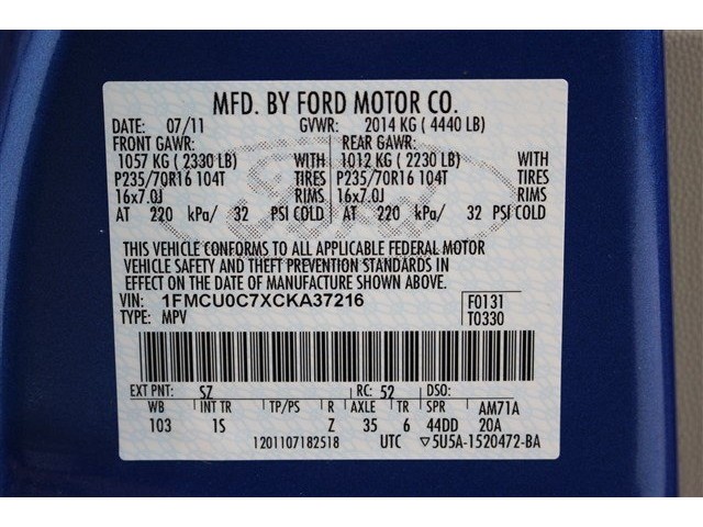 • VIN: 1FMCU0C7XCKA37216