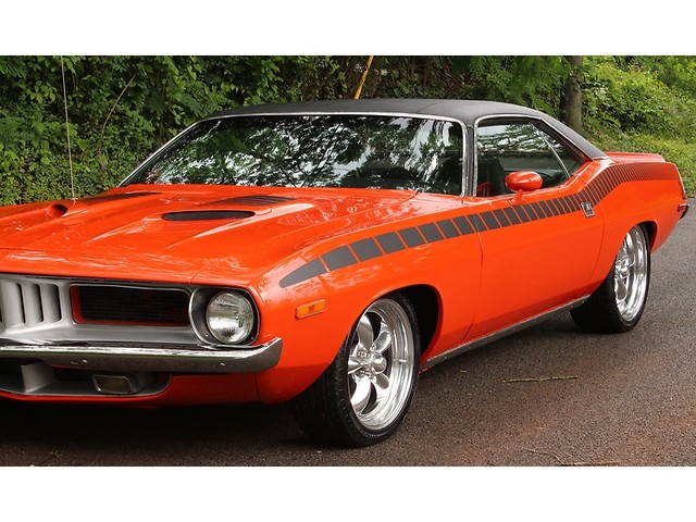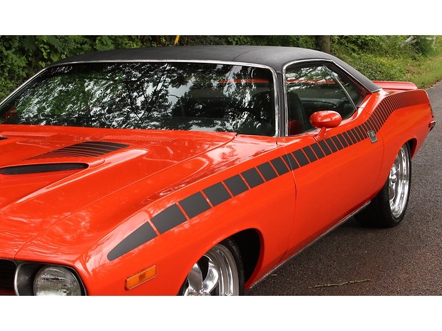 Up for sale we have a 1973 Plymouth Cuda. The ‘Cuda was an offspring of the Barracuda that were built from 1970-74. They were initially built to compete with Camaros and Mustangs of the day. The one we have for sale is a solid car that has the matching #s V8. It sports a ton of eye appeal with the Vitamin C Orange Paint scheme that is accented by the Black Stripes and Black top. In the paragraphs to follow we will give a brief description of the exterior, interior, and driveline of the Plymouth, but first I would like to tell you a little about us.