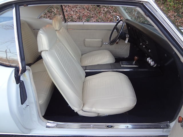Next, we will move on to the interior of the ’69. It is done in the Factory white that provides a killer scheme inside and out. This jewel comes with the correct bucket seats and console. The seats, door panels, and headliner are all white with the carpet and console being done in black. Everything inside this T/A works, even the dome lite and horn. The only thing that doesn’t look correct is a set of after market gauges.