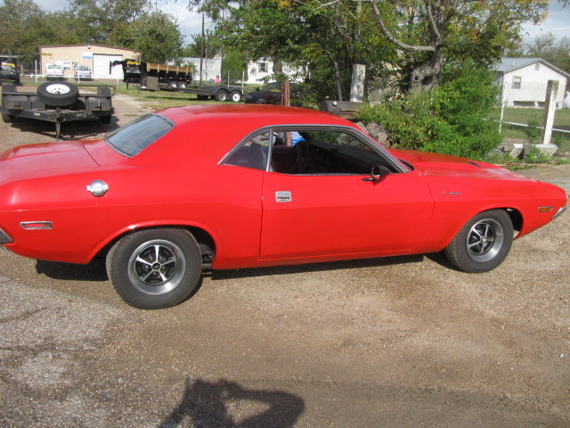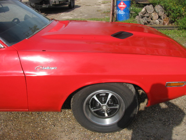 Up for auction is a real 70 challenger RT. This challenger runs and drives very good. The engine is a rebuilt 383 big block {stock build} 727 automatic transmission, {also rebuilt} with new 2 1/2" dual exhaust system and original style tips.  Power steering with very good and tight front end. The brakes are in excellent working order. The emergency brake works good. The rear vallance panel has been cut out for tips. This car will need some body work and new paint.  The paint job on this car is UGLY. The challenger still has all original body panels including original trunk pan.  The frame rails {unibody} are very solid and rust free. All major parts on the body are solid. There is some filler and bubbles on the lower rear qt panels and some minor bubbles here and there. There is a patch panel in the trunk. PLEASE see all pictures before asking questions.  The left rear tail panel also has some minor damage and is missing the chrome piece. All chrome and stainless look to be original and will need to be replaced or rechromed.  It has the RT hood, 14" magnum wheels with new 235-60-14 tires.  Front grill is very nice,will need repainted. This Rt has the original factory fender tag. VIN , cowl, radiator support, are all in place and all #'s are correct and match title. The door sticker was painted over and is not readable.  This is a real JS N-code RT challenger with factory AC {missing AC parts} and loaded fender tag that runs and drives great. The highest bid will win with a no reserve. This car will need minor body and paint to be a very nice car. It is a high-Impact color FJ5. The interior is black and is in very nice driver condition. Carpet need replaced,bucket seats and rear seat are very clean and nice with all correct seat belts. The rallye dash is missing the AC switch panel { one will come with the sale} radio is missing. The horn is not working,no brake lights {should be an easy fix} all lights do work,blinkers worksome rallye gauges are not working such as clock and tach. There are some aftermarket gauges installed,Oil/Temp. Excellent oil pressure even at idol,New 3-core copper radiator  with correct radiator #'s {2998970  440 auto.}. Runs very cool. This car starts easy and idols great and is ready to drive.  The steering wheel is also in very nice condition and original.  All door panels are OK for a driver.  There is a home made dash cover,{VIN # is under dash cover and correct} The headliner is new but also not the original style.  All front and rear windows roll up and down. The passenger front and drivers side rear are a bit tight but do work.  The 383 engine is bone stock with Holley 4-bbl carb. and comes with a new chrome air filter.  The paint is cheap and ugly. The drivers side door sags and is a little hard to open. The front windshield has cracks.