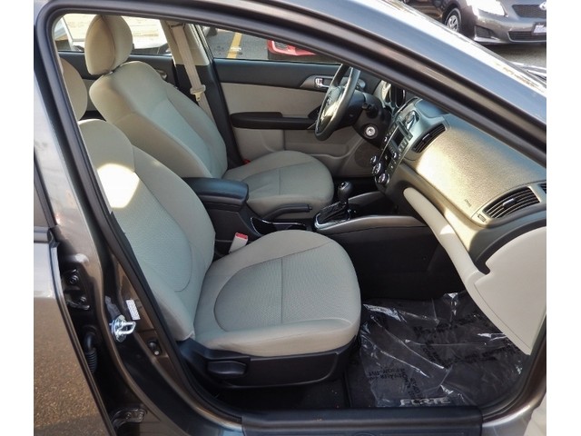 This is a 2013 Kia Forte EX with 17,121 miles. It has a dark gray exterior with a creamy tan cloth interior. The vehicle has two tiny burnholes on the backseat, one on each side but otherwise it is in great condition and runs smoothly.