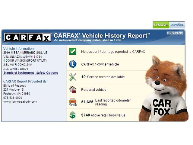 You are bidding on a one owner 2010 Nissan Murano with 52,623 miles that has a clean Carfax report.  Winning bidder will get 4 new tires if the reserve is met. This one owner AWD Murano is nicely equipped with options such as an automatic transmission, leather seats, heated seats, back up camera, moon roof, keyless entry, BOSE sound system, Bluetooth, including many more!  Other than a small scuff on the rear bumper this vehicle is really clean and looking for its second owner.  This vehicle is ready to pass state inspection so please feel free to call or email today if you would like to end the auction early.