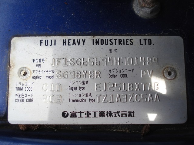 • VIN: JF1SG65694H701489