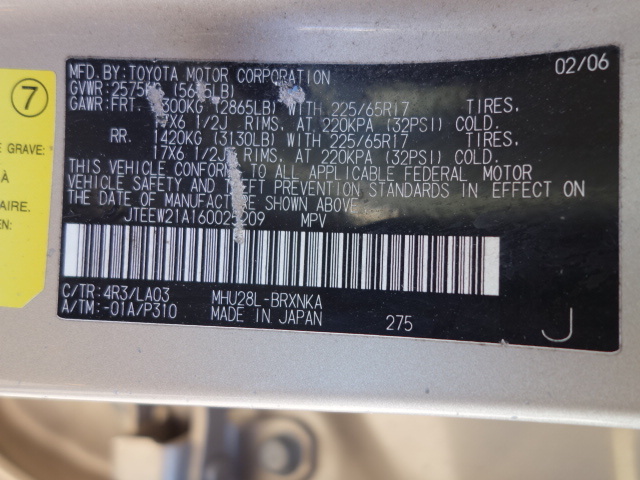 2006 TOYOTA HIGHLANDER HYBRID 4WD