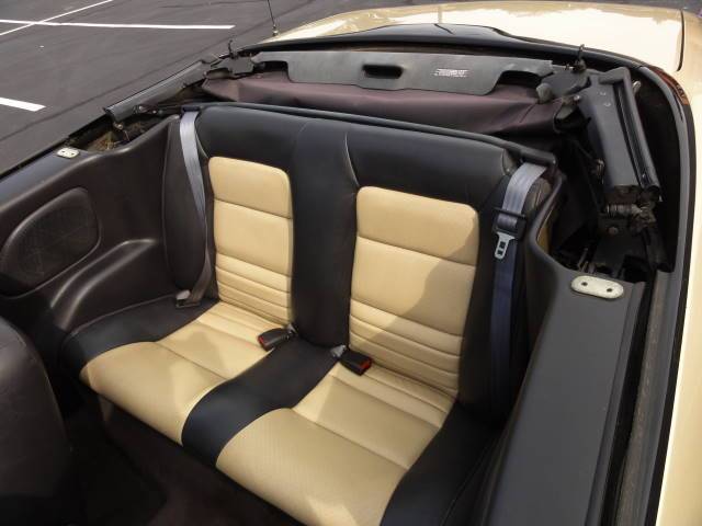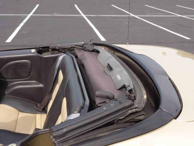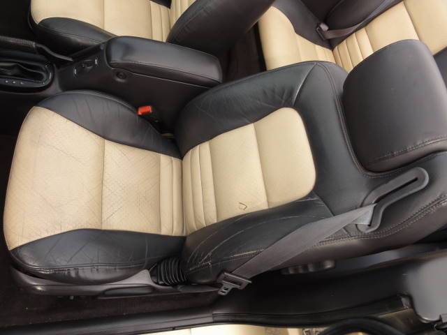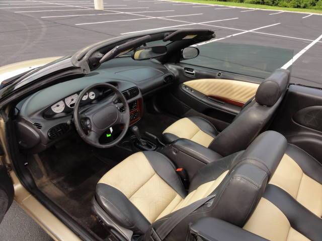 We have this pretty Chrysler Sebring Limited Convertible to offer this week. It was just traded for a new car by it's original owner. It's finished in harvest gold metallic with a black cloth top and charcoal leather interior with cream inserts. A pretty color combination.
