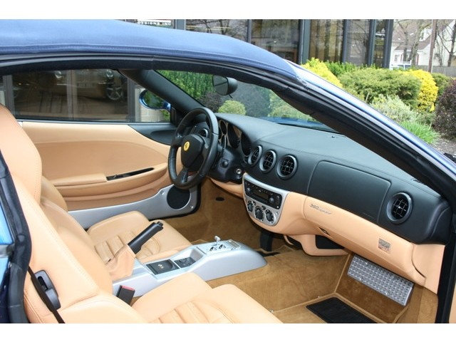 This 360 Spider was special ordered by its first well known Ferrari collector owner, it is absolutely superb throughout.  It has spent its life thus far in a garage with many of its brothers and sisters.  It is priced fairly with regard to mileage and condition.  It has never, ever been used in inclement weather, it has been housed in a climate controlled garage-collection and has been detailed far better than when delivered new from the factory.  This 360 Spider will not disappoint in any way.