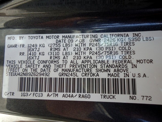 Hello and thanks for stopping by our "Best Offer" type auction for this, 1-Owner, clean Carfax history, 2009 Toyota Tacoma SR5 V6 4X4 Access(Extended) cab pick-up truck with new clutch. Inspected and ready to go! As you can see by the many detailed photos taken, the "Magnetic Gray" metallic exterior shines like the Florida sun. She looks very nice. The "Graphite Gray" interior is clean and is in good shape. The 4.0L V6 engine is a terrific all around performer, with plenty of guts down low and a willingness to spin up into the higher rpm ranges. She is strong and solid. Send us your Best Offer!! Features, new clutch, rear camera located in the rear view mirror, 4X4, 16" wheels, clutch cancel start, 6-speed manual transmission, sliding rear window, bed liner, tilt leather steering wheel, AM/FM/CD player stereo, WMA, MP3, keyless entry, tinted glass, 6.1' bed, owner's manual, tachometer, front and side air bags, spare tire, jack, power mirrors, locks, windows, cruise control, anti-lock brakes with brake assist, flip-up rear seat bottoms, storage compartments under rear seat bottoms, fog lights, 236hp 4.0L V6, floor mats, reverse-open rear doors, 12V outlets, accent stripes, traction control, RSCA, dimming rear view mirror, 1-Owner, Clean Carfax and much more! The manual transmission hits every gear perfectly. Air conditioning is ice cold! All electrical items appear to be in good working condition at this time. Toyota knows what compact truck buyers want and this Tacoma pickup delivers the goods. Toyota Tacoma boasts a heritage of solid service as a work truck along with a hard earned reputation as a winning off road race truck. Tacoma starts with nothing but quality, durability and reliability. High quality interior build materials, great braking, comfortable seats and great running. In government crash testing, the Tacoma received a top five-star rating for its protection of occupants in frontal and side-impact crashes. The Insurance Institute for Highway Safety gave the Tacoma its top rating of "Good" in its frontal-offset crash test. The Tacoma is also the only compact/midsize truck to receive the highest rating of "Good" in the IIHS side-impact test. Please note, all of our vehicles are free from any and all liens. We also use our detailed pictures as a physical description so look at them all. Pre-sale inspections are encouraged and welcome. Please do not assume anything. Please read our “terms and conditions” below. If you have any questions about this auction or any of my other auctions, please feel free to contact me, Avi Fraser, via email bestofflorida@rollingwheelsinc.com or you can call me at 954-527-5522 and I will be happy to help you. We are always willing to negotiate and 4 SURE, WE WILL MAKE A DEAL WITH YOU! Thank you for your interest and I look forward to hearing from you. Please visit our location at Rolling Wheels 125 E. Sunrise Blvd. Ft. Lauderdale, Fl. 33304. We are open M-F, 9am-5pm. Saturday 9am-4pm. Closed Sunday and holidays.