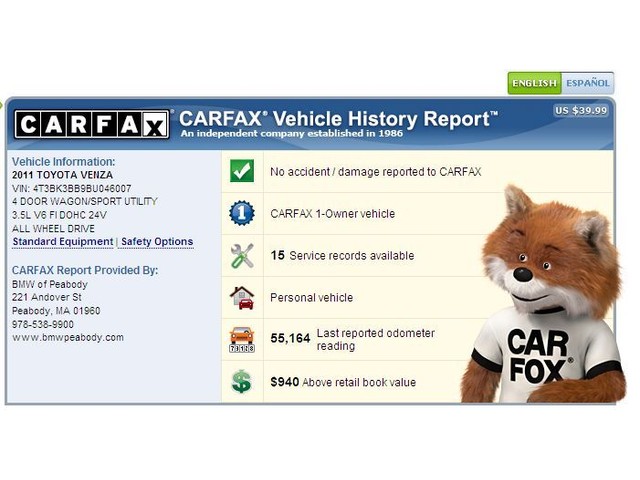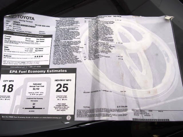 You are bidding on a one owner 2011 Toyota Venza with 55,164 miles that has a clean Carfax report.  This Toyota is loaded from the factory with options such as leather, heated seats, navigation, back up camera, Bluetooth, Premium package #2, keyless entry, moon roof, including many more.  Other than a small dent in the in the right rear wheel well, there are no stories and the condition is very clean.   This one owner Toyota Venza is ready to pass state inspection and has plenty of brake and tire life left, so if this is the vehicle you have been looking for look no further!  Please call or email today if you would like to end the auction early.