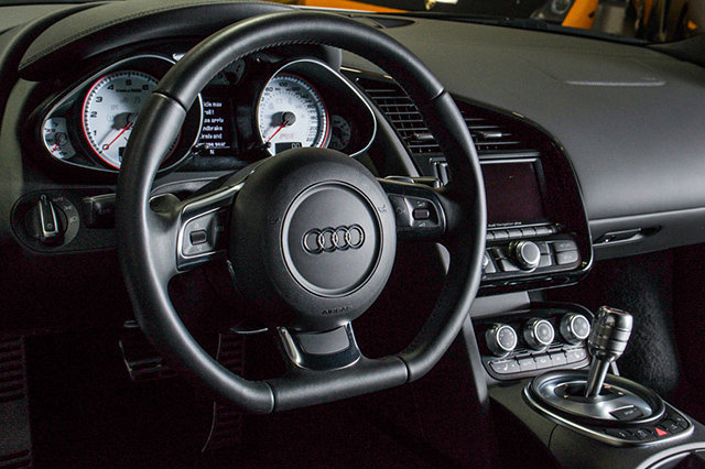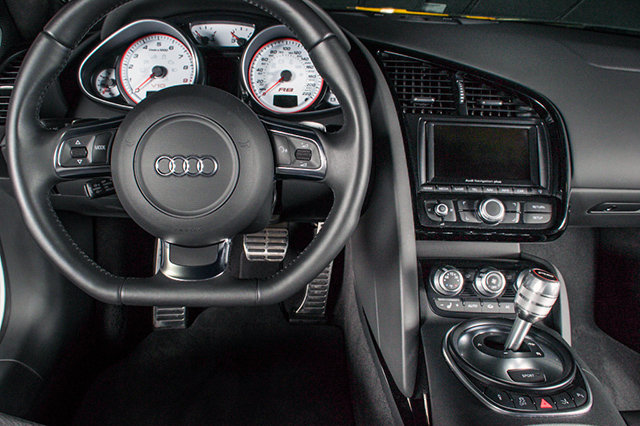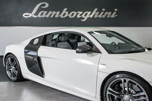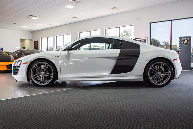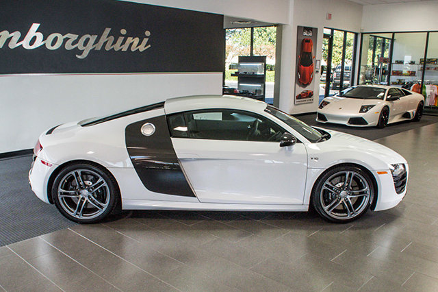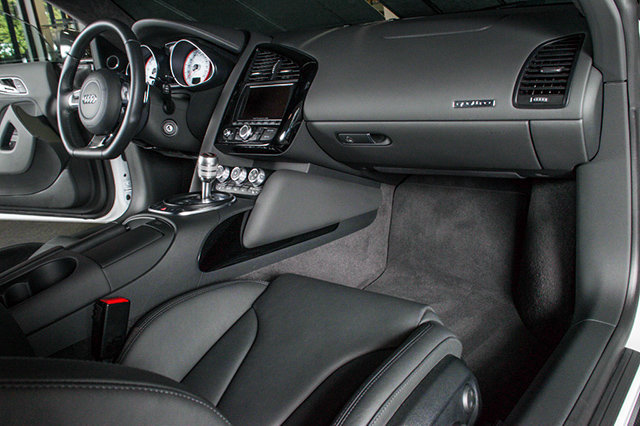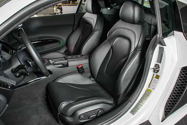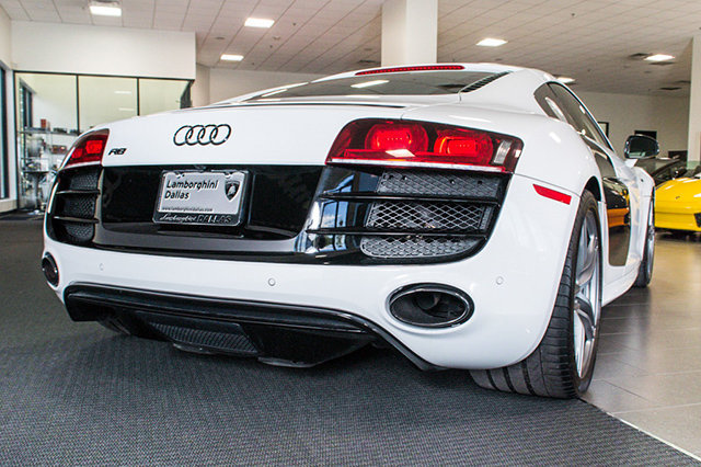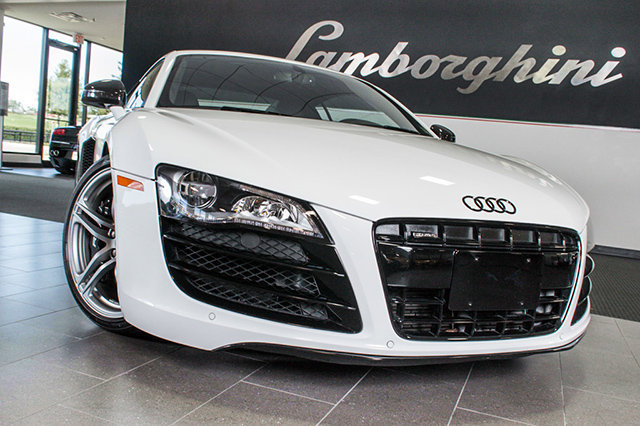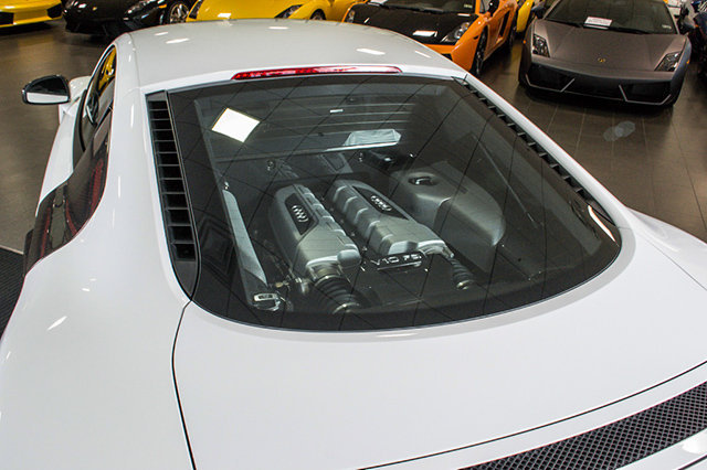 This is a smoke free Carfax certified 2012 Audi R8 Cpe, equipped with a 5.2L 520HP V10 engine and a 6-speed Tiptronic (Paddle shift & Auto) transmission. This car is finished in a sharp Gloss White exterior and Black full leather interior along with Piano Black trim throughout.