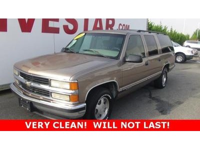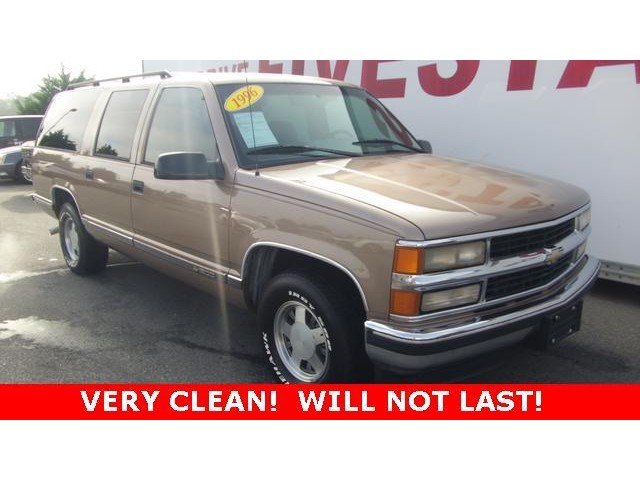 Leather, !! CLEAN CARFAX !!, ** PREMIUM ALLOY WHEELS **, and ** PREMIUM LEATHER INTERIOR **. There's no substitute for a Chevrolet! SUPER CLEAN! Confused about which vehicle to buy? Well look no further than this great-looking 1996 Chevrolet Suburban 1500. Zooooooom! A powerful machine right here. You gotta drive it! It's unbelievable how it moves you....really! This Suburban 1500 is nicely equipped with features such as Leather, !! CLEAN CARFAX !!, ** PREMIUM ALLOY WHEELS **, ** PREMIUM LEATHER INTERIOR **, ABS brakes, AM/FM radio, Bodyside moldings, Bumpers: chrome, Front anti-roll bar, Front reading lights, Passenger vanity mirror, Rear anti-roll bar, Tachometer, and Voltmeter.