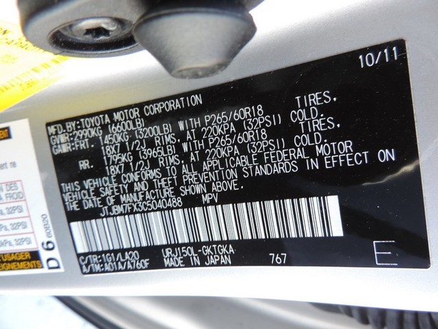 • VIN: JTJBM7FX3C5040488