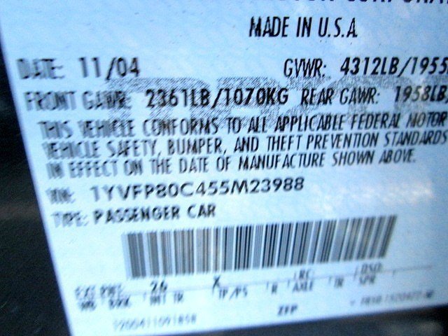 VIN: 1YVFP80C455M23988 Stock Number: 2133016A Mileage: 101829