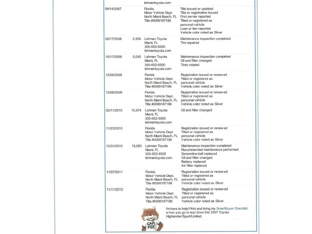 2007 HIGHLANDER V6 LIMITED LEATHER SUNROOF CARFAX CERTIFIED ONE FLORIDA OWNER