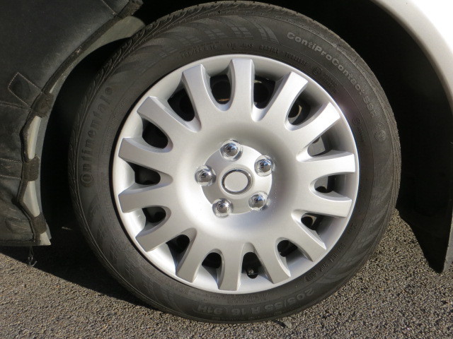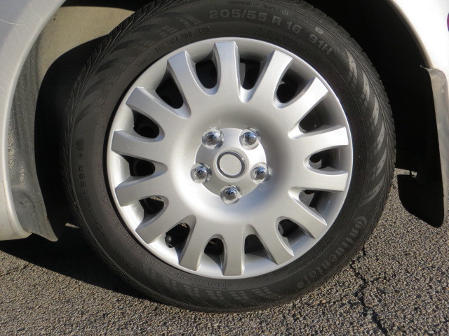 Blah tires all around on the steel factory rims with the fine plastic wheel covers as shown.