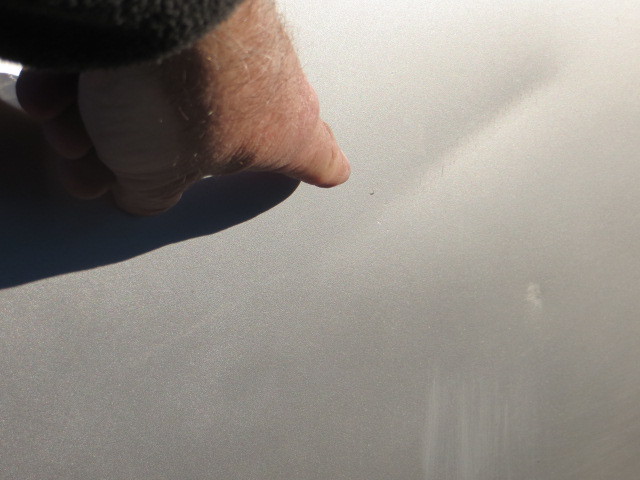 Each side rocker has a few dings, dangs and dents as shown.. The right front door has a slight crease as pointed out.. The paint is old and a bit dull in spots.. Just like me.. There are a few other dents I forgot where so look for me pointing out anyting I can find in the pictures..