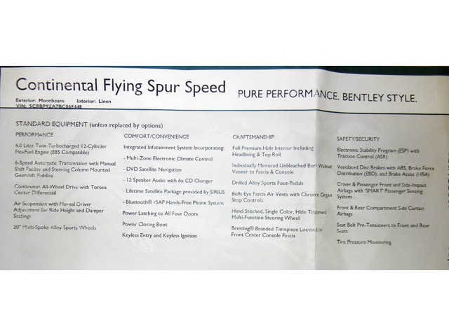 This 2011 Bentley Continental Flying Spur Speed is a Carfax certified one owner vehicle with 17,838 miles. It has the performance, comfort, convenience and craftsmanship you look for in a Luxury vehicle. LUXURY FOR LESS! Make this beautiful Bentley yours.