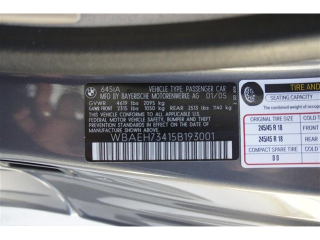 2005 BMW 6 Series WBAEH73415B193001