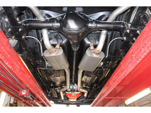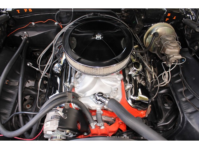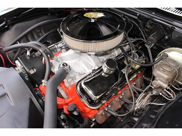 Finally, we will take a look at the heartbeat of the Chevy. Under the hood it has a 396 V8 that is mated to a Muncie 4 Speed Trans and a 12 Bolt Rear end. The engine comes with an Edelbrock Intake and Holley Carb. It’s dressed with a set of stock chrome valve covers and breather. It comes set up with Power Steering and Power Disc Brakes. Everything is very neat and clean. When you look at the bottom it has all new floor pans as well as new sub frame bushings. The brake and fuel lines have been replaced as we as a new fuel tank installed.