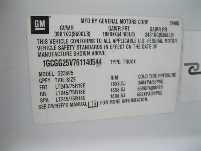 • VIN: 1GCGG25V761140544