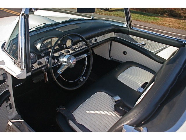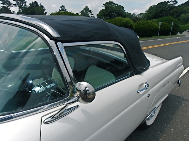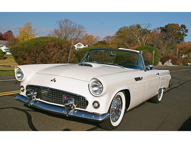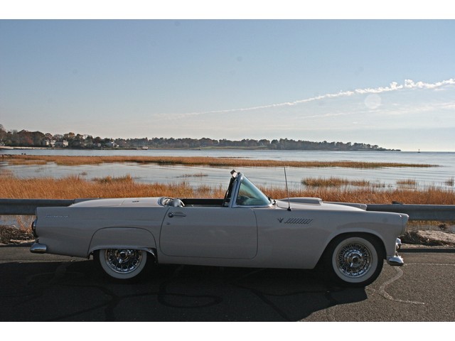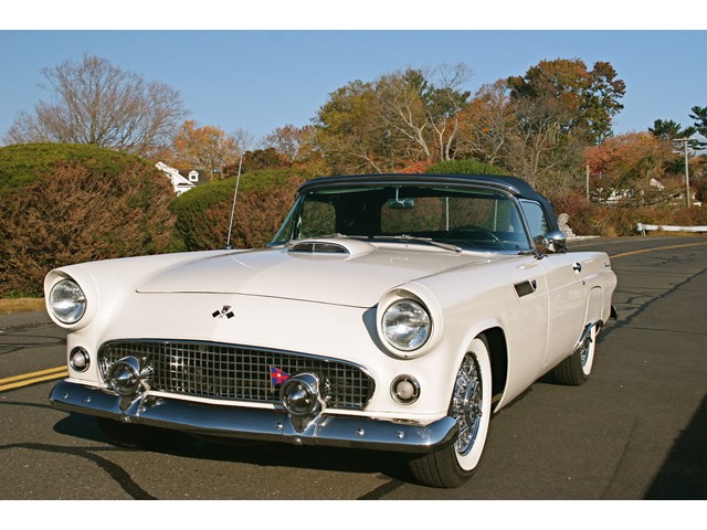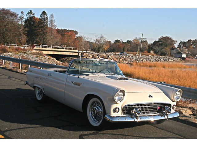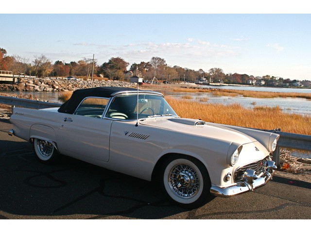 The Classic Car Gallery is proud to offer this gorgeous 1955 Ford Thunderbird. She has been fully restored, and is one of the finest running T-BIRDS we have ever driven. Built on August 24th, 1955, in Dearborn, MI, she has led pampered life. The car has clearly been restored, though we do not have the documentation. The COLONIAL WHITE (E code) paint is excellent with deep shine and great luster. The car has a Colonial White HARDTOP that’s finished to the same standard as the rest of the car. In Addition, she has a new BLACK SOFT TOP. The two toned BLACK/WHITE (code XA) interior likewise is in excellent condition, the leather is supple and unblemished. The POWER SEATS work as they should, and the gauges and instruments were restored, they look and perform as new. The car has POWER SEATS. The black carpets were also replaced and are excellent. The original 292CID (P code) motor appears to be well built, runs smoothly and has good power. The engine compartment is WELL DETAILED. The original FORDOMATIC TRANSMISSION shifts smoothly. The chrome and exterior trim is excellent. The underside of the car shows well. She rides on a lovely set of KELSEY HAYSE chrome wire rims, and RADIAL white wall tires. The quality of this car is self-evident, she is mechanically excellent and ready for show or go!!! Please feel free to call us at 203 256 9800 or email Steven@classiccargallery.com if we can answer any of your questions.