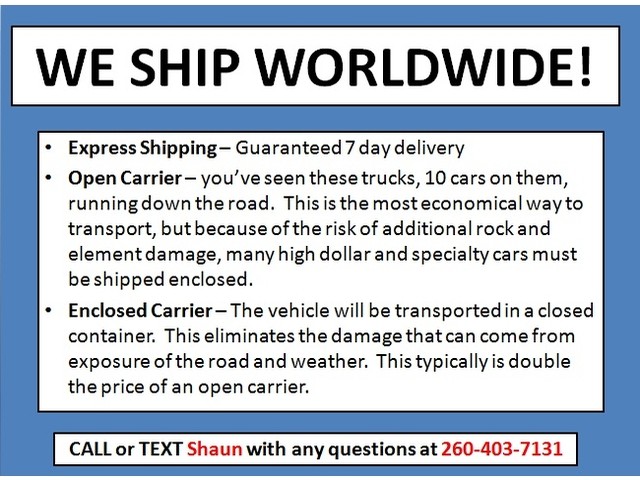 You will be dealing with the Lokey Motor Company and Shaun Ivancic. With over 40 years combined experience, and the strongest customer satisfaction scores in our Auto Group, your experience with Lokey and Shaun Ivancic on eBay is sure to be a smooth and pleasant transaction. Please call  if you have any questions.
