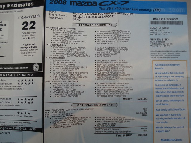 NO RESERVE 2008 MAZDA CX-7 GRAND TOURING AWD 2.3L TURBO NAVI TECH PKG NICE!