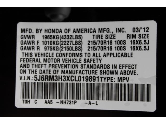 2012 Honda CR-V 5J6RM3H3XCL019891