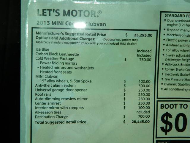 Heated Leather Seats, Alloy Wheels, Overhead Airbag, Bluetooth, iPod/MP3 Input. Cooper Clubman trim. EPA 35 MPG Hwy/27 MPG City! CLICK NOW!======KEY FEATURES INCLUDE: Heated Leather Seats, iPod/MP3 Input, Bluetooth MP3 Player, Aluminum Wheels, Keyless Entry, Remote Trunk Release, Steering Wheel Controls, Electronic Stability Control, Bucket Seats