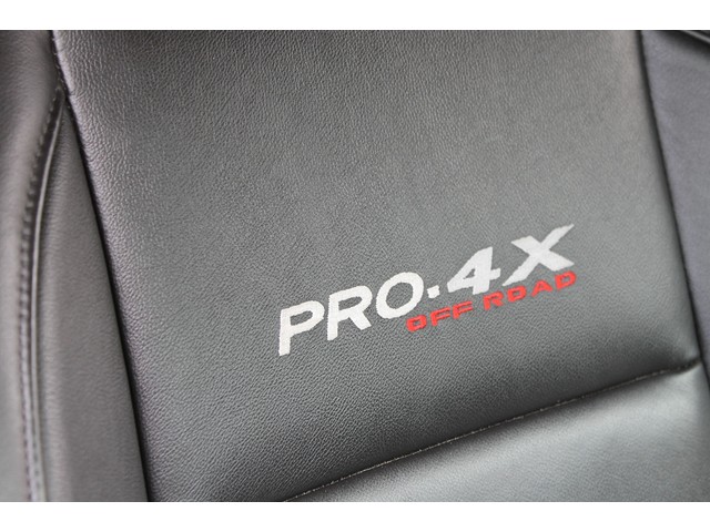 The black leather Pro 4X custom interior is extremly clean and smells new.  This is a non-smokers truck, so NO burn holes or musty smells.  The carpet has been protected with weathertech floor matts, therefore it's like new with no stains or tears.  There is minor wear on the drivers seat with minor bolster wear from entry and exit.