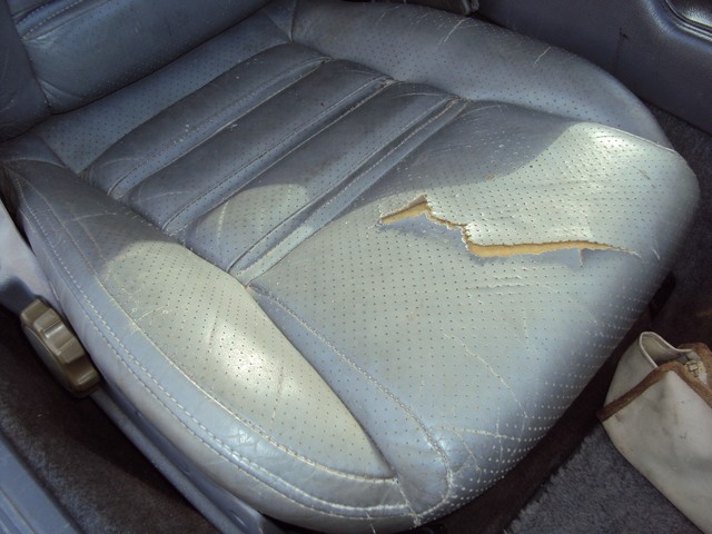 THE INTERIOR LOOKS GOOD FOR IT'S AGE.  THE FRONT SEATS ARE RIPPED, BUT THE REAR SEATS LOOK GOOD.  THE CARPET HAS SOME STAINS, BUT THE DASH, DOOR PANELS, HEADLINER, CENTER CONSOLE, AND MORE ALL LOOK VERY GOOD!  THE DASH'S TOP PAD DOESN'T EVEN HAVE ANY CRACKS IN IT!