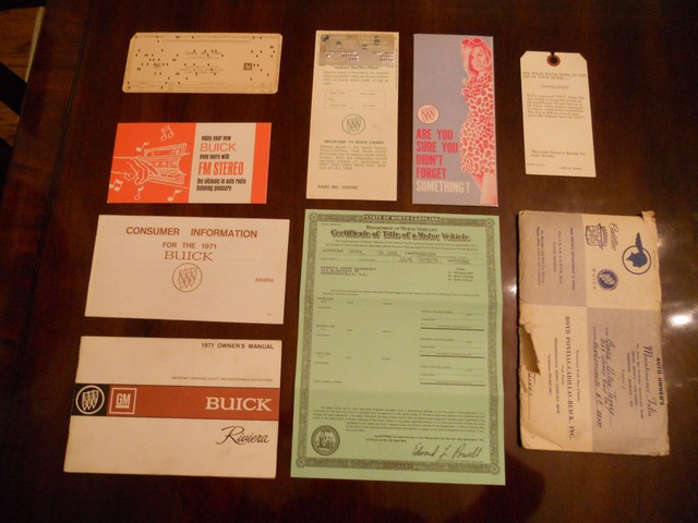 THIS AMAZING RIVIERA STILL RETAINS THE ORIGINAL 455, V-8 ENGINE THAT RUNS GREAT. IT IS EQUIPPED WITH POWER STEERING, POWER BRAKES, COLD A/C, POWER SEAT, POWER WINDOWS, TILT AND MORE.WE HAVE THE ORIGINAL OWNER'S MANUAL, PROTET-O-PLATE, CONSUMER INFORMATION BOOKLET, BUICK BROCHURE, BUICK FM STEREO INSTRUCTIONS MANUAL, AND GLOVE BOX PUNCH CARD. IT WAS PAINTED THE ORIGINAL WHITE COLOR ABOUT 5 YEARS AGO THAT LOOKS GREAT. YOU WILL NOT FIND ANOTHER WELL DOCUMENTED RIVIERA IN THIS CONDITION AND FOR A REASONABLE PRICE.