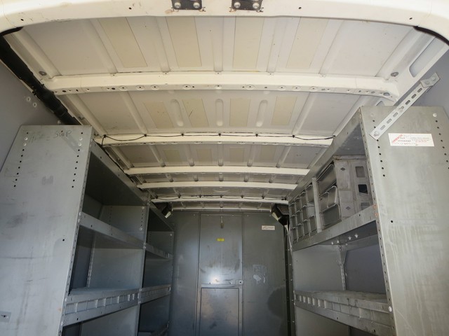 There is a Divider that separates the front seats and the cargo area. The Divider can be removed if you do not want it. The rear shelves can also be removed. The rear windows have a security cage installed so no one can break into the van! There are shelves, toolboxes and storage compartments in the cargo area. This is a VERY nice and clean van which has been fully serviced.