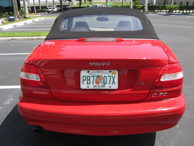 2004 VOLVO C70 LT CONVERTIBLE WITH SUPER EXTRA LOW 62K FLORIDA MILES, 2.4L 5 CYL TURBO CHARGED ENGINE, PREMIUM PACKAGE, SPORT PACKAGE, COLD WEATHER PACKAGE, AUTOMATIC TRANSMISSION, SUPER NICE 17 INCH SPORT ALLOY WHEELS, ICE COLD AIR CONDITIONING, LEATHER INTERIOR, HEATED FRONT SEATS, IN DASH CD DISC PLAYER AND MUCH MORE. Up for auction an absolutely gorgeous looking in Bright Red exterior color and Tan Leather Interior Volvo C70 LT Convertible that has truly been well kept and maintained. This vehicle's history report shows it to be a One Florida owner vehicle! The mileage represented is the actual mileage of this vehicle. Clean smell throughout, appears to have never been smoked in. This vehicle has all of its original body parts and appears to have never been in an accident. It has a CLEAN AUTOCHECK history report! Other than a few very minor paint chips (professionaly touched up) the exterior is flawless. We looked all over and found no door dings, obviously this vehicle is one of those vehicles you always see parked deep in the parking lots. To look this good, it is obvious that this beauty has been garaged. This vehicle's transmission shifts out nice and smooth from gear to gear. The engine is mechanically sound and can be driven anywhere with confidence. The elctrical and optional equipment on this vehicle has been checked to insure that it is all in working condition. This cream puff is a top-flight used vehicle, with no known defects. No warning lights on the dash and No oil leaks makes it a Great vehicle! The beautyful Tan leather interior is clean and polished looking. The tires are in a good shape, please see the pictures.  Plan a trip or vacation to Florida and we will pick you up at the Ft Lauderdale airport only 15 minutes away. Please call us for more information and the lowest shipping quote at 561-317-1916. Thank you for reading and Good Luck!