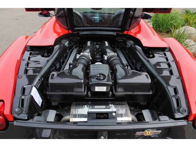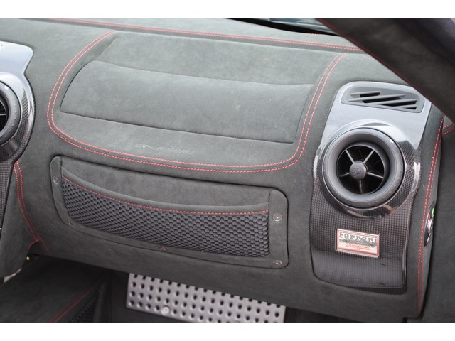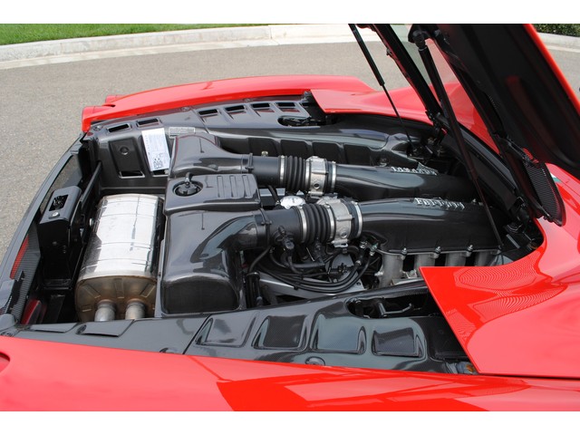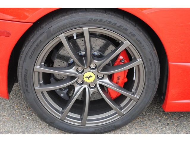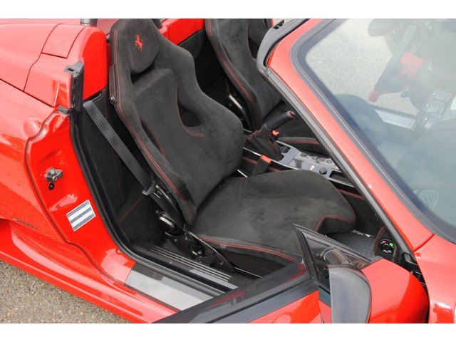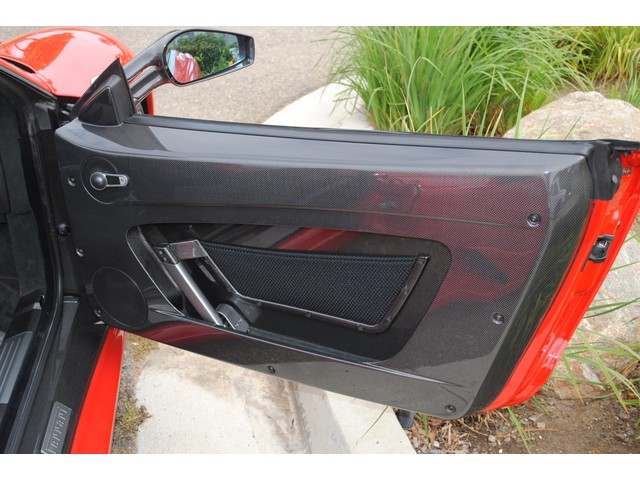 We are thrilled to be able to offer this example for the second time. We acquired it from its original collector owner in 2012 and subsequently sold it to a local enthusiast who babied it during his stewardship. It is among the highest optioned 16M's built, featuring a full Black Alcantara interior with Red deviated stitching instead of the standard Bata cloth interior fitting. Its Rosso Corsa Paint is unmarred and holds a deep shine, the matching Red painted calipers show off the massive Carbon Ceramic brakes, and the Italian flag stripe trumpets its heritage. Virtually every possible Carbon Fiber option is present - racing seats, door panels, full engine compartment trim, center splitter, rear diffuser - the list goes on. It has the desirable iPod stereo with JBL speakers, the factory Red satin indoor car cover, spare tire, factory fire extinguisher, and all the books including the presentation book, tools, and accessories.