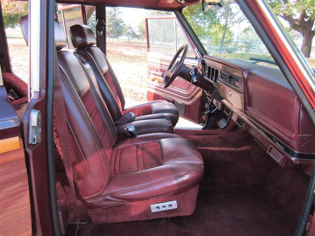 Immaculate, super clean, one owner, runs perfect and everything works like it should. Very rare and getting harder to find especially in this condition. Exceptional Burgundy paint with wood grain, tinted windows and Maroon leather interior in like new condition. The overall appearence is stunning and stands out where ever it goes. The exterior trim moulding is a little wavy and is only a minor flaw in this rare beauty. Loaded with power windows, power mirrors, power locks, power seats, cruise control, overhead display with compass & temp, rear window wiper, AM/FM cassette, and shift on the fly 4X4. Perfect running 360 V8 matched to a smooth shifting 727 tourqeflite automatic transmission. The Grand Wagoneer has gone under a multi point and complete drive train inspection and is ready to drive anywhere today. Very solid and rust free with white wall tires and brakes that stop on a dime. These Grand Wagoneers are very sought after and were ahead of their time.