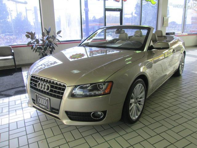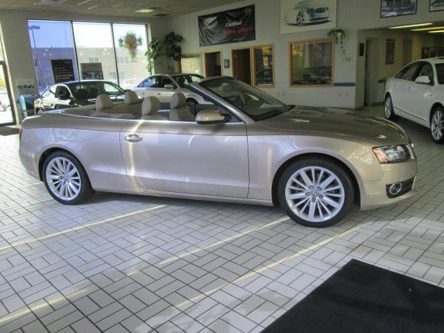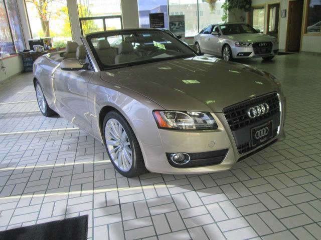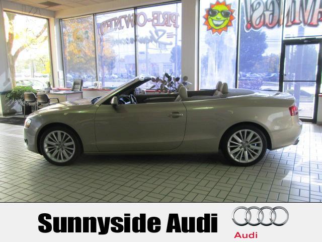 2010 Audi A5 2dr Cabriolet Auto quattro Premium Plus (40k mi.) Cabriolet! LED daytime running lights! Bluetooth! Xenons! 18" wheels! Call or text Allan Slavik in Internet Sales at 216 406 2985 for additional information. 2010 Audi A5 2.0T Quattro Cabriolet in Arum Beige metallic with Cardamom Beige interior and a brown roof. Equipment includes: xenon plus headlights, LED daytime running lamps, LED tail lamps, 18" 15-spoke alloy wheels, bluetooth, three zone climate control, heated front seats, Homelink Audi Music Interface for ipod, and rain/light sensors. We are proud to offer this fine Audi Certified Pre-Owned vehicle. Only cars with an approved Carfax Vehicle History Report are considered for our Certified pre-owned program. Ask us for a free copy of the CARFAX on this vehicle. This Audi has passed a rigorous 300+ point inspection and certification process, the most comprehensive process in the industry. Total transferable coverage is for up to six years or 100,000 miles from its original in-service date. Ask your Audi Brand Specialist for specific details. You will have the the balance of the Audi 12-year Corrosion Perforation limited warranty along with Audi 24/7 Roadside Assistance. Special financing is available. Don't settle for less. Audi Certified Pre-Owned vehicles are the very best Audis available in the marketplace today. If you're inquiring online about this vehicle, please be sure to check your spam folder for domain name sunnysideauto.com. Sometimes our email replies will end up coming to you as spam. Although we strive to make sure our online advertising is 100% accurate, errors or ommissions may occur from time to time. Please check availability, pricing and options before finalizing your purchase.  One-owner, non-smoker, clean Carfax Vehicle History Report.  This is a garage kept vehicle.The engine on this vehicle is running properly.This vehicle has no known defects.The exterior of this vehicle is extra clean.Extra clean interior. Absolutely no rips, odors or abuse.  We installed four new Pirelli P6 all season tires.  We installed new front brake pads and rotors.  The rear brakes are at 75% wear remaining.  We have two master keys and the emergency key.  Includes the owners manual packet with all the books.  You will have Audi warranty through 4/14/2016 or 100,000 miles on the odometer, whichever occurs.  Call for the specifics on the warranty coverage.