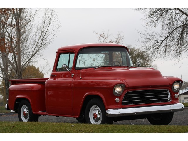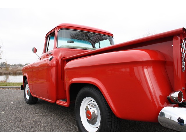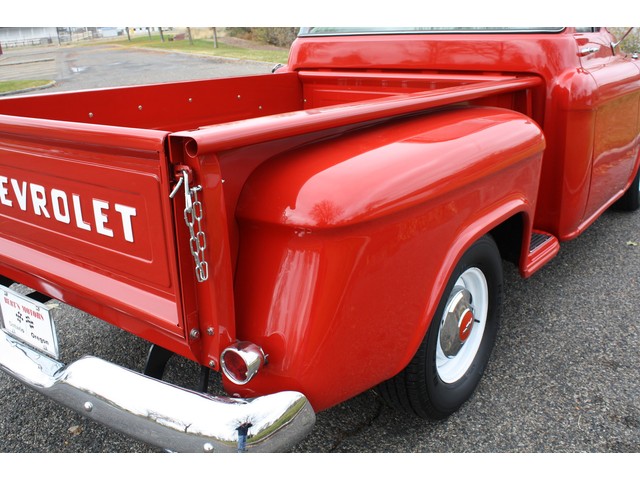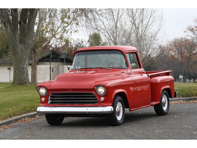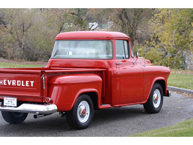At some point during the restoration, it ended up with a Chevy "3E57" VIN#. It looks like the cabs were changed out and a 57 cab was put on. The truck is a 1955 and is titled a 1955.