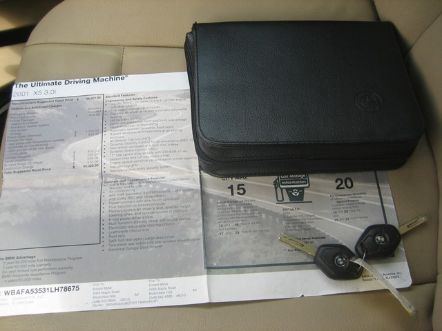 UP FOR OUR NEXT NO RESERVE AUCTION IS THIS VERY NICE 2001 BMW X5 AWD 3.0i RARE 5 SPEED MANUAL NON SMOKER CLEAN NO RESERVE. THIS SUV IS OVERALL IN GOOD CONDITION INSIDE AND OUT. THE EXTERIOR SHOWS NO MAJOR DENTS, DINGS OR SCRATCHES. THE INTERIOR ALSO SHOWS NO SIGNS OF ABUSE, (SEE ALL PICTURES FOR MORE DETAILS.) THE ENGINE RUNS STRONG AND THE TRANSMISSION IS SMOOTH. THE SUV WILL BE A STEAL AT NO RESERVE, SO BID WITH CONFIDENCE!!!