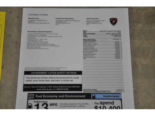 Year: 2013 Make: Lamborghini Model: Aventador