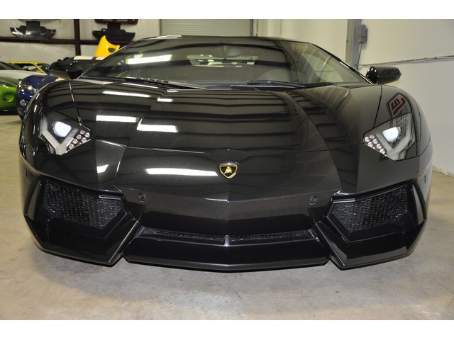 2013 Lamborghini Aventador LP-700-4 Coupe ZHWUC1ZDIDLA01368 -Nero Ade (Black) / Black Interior with Giallo Taurus (Yellow) Stitching,  Extended 5 Year Factory Bumper to Bumper Warranty transferrable, Navigation, Rims, Installed the Lamborghini Exhaust for a better rumble, Aventador Shiny Black, Carbon Ceramic Brake, Yellow Calipers, Lifting System with Yellow Rear Suspension Springs, Steering in Smooth Leather Multifunction, Lamborghini Sound System, Park Assist (Sensors with Rear View Camera), Roof in Body Color, T-Engine Cover In Carbon, Transparent engine Cover, Transparent Engine Bonnet. This Aventador has a clear bra covering the entire front end of the car. This is highly desirable color and for more information please email bfkatz@bjmotors.biz or call our toll free number 1-800- 270-1608. Come visit our facility in Houston, Texas.