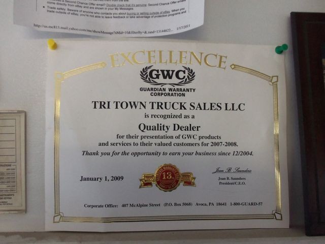 We are TRITOWN TRUCK SALES, 1360 Main St., Watertown, CT, 06795. CT Dealer #U6599. We also own LITCHFIELD FORD in Litchfield,CT since 1989. Owned and operated by the Hill Family. Any questions, email or call Ray Barrett 860-274-3310 or Terry Hill 203-410-7068 anytime. We offer bank financing through FMCC, Citizens Bank,Brookline, BCI Financial and others. Local airport is BDL in CT. Delivery is available at dealer rates. Extended warranties are available through Guardian Warranty Co. in PA. Thanks for looking, please check out our other auctions!!............WE SELL TO CANADA AND EUROPE............