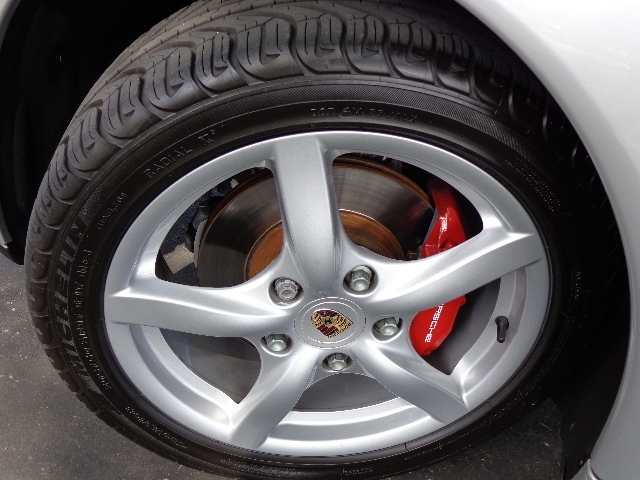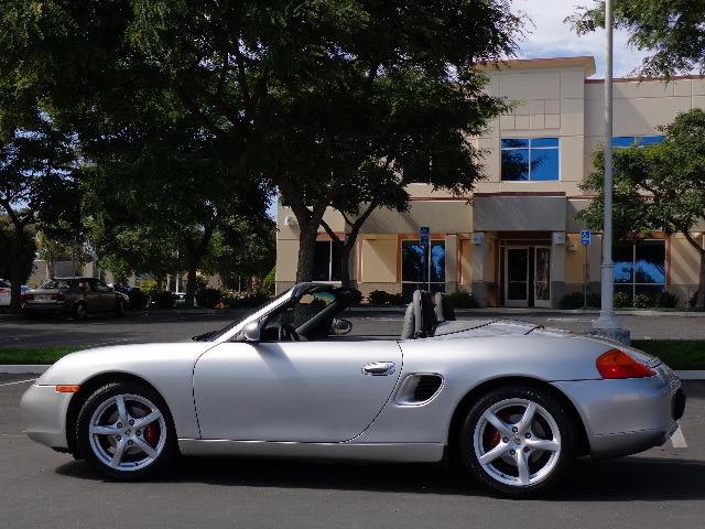 Ordered in Artic Silver Metallic with perfect gray leather and a matching gray soft top. Automatic tiptronic transmission, Leather wrapped sport steering wheel with paddle shifter's, Ice cold A/C, In dash CD, Power top, and a upgraded set of factory Porsche 17" wheels with red calipers and a fresh set of tires makes this Boxster standing tall....