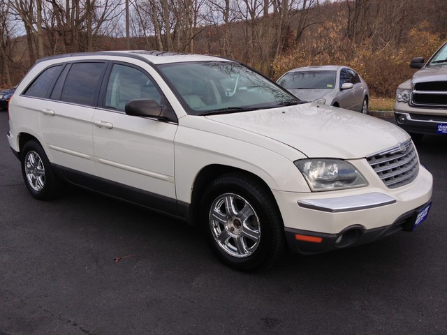 This 2005 Chrysler Pacifica AWD Touring Wagon had only 1 previous owner and no reported accidents as shown above on the AutoCheck Report.  It also has a valid New Jersey inspection sticker through 8/14.  We purchased this vehicle from a local New Car dealer as a trade-in.  This Pacifica runs great and there are no warning lights lit on the dashboard whatsoever.  There are no known mechanical issues with this SUV and I test drove it for over 100 miles.  After purchasing it we had the left front wheel bearing replaced with a brand new bearing and it runs and drives really nicely.  The transmission shifts smoothly throughout all gears and the motor sounds great which I give several examples of in the video above.  (Please see the YouTube video for a full walkthrough and short test drive of this Chrysler Pacifica)  This Chrysler also has a manual shift mode which is a fun feature.  The brakes are very effective and safe which I also give several examples of during the video above.  This SUV comes fully loaded with: Power Windows, Power Locks, Power Mirrors, Power Seats (+lumbar), Heated & Leather Seats (front and back), Third Row Seat, CD Player, DVD Player (rear drop down LCD), Hands Free Talk, Cruise Control, ABS, Air Conditioning, Working Heat, Navigation and much more!  The navigation is working perfectly as well as all of the other features.  The only feature which I could not test was the DVD player so I am not sure if it is functional or not.  All other features are working and have been tested.  Also, All of the interior/exterior lights and signals are fully operational including the fog lights.  The interior is in good shape for the year and miles on the vehicle.  The leather seats are in good condition with acception to some wear on the drivers seat.  This was definitely a NON-SMOKER vehicle, there is no burn holes or smoke smell inside the SUV whatsoever.  The interior smells great.  The exterior is also in good shape.  The paint looks fantastic and has a really nice shine to it.  The clearcoat is fully intact on the paint and there are no faded areas whatsoever.  There are a few minor scratches/dings which I point out in great detail in the video posted above so please see the video for close ups.  The chrome wheels are also in really nice condition.  The front right rim is missing the center Chrysler cap which I point out.  The tires have a good deal of tread life left on them as well which I also capture in the pictures and video.  The engine bay is super clean and all fluids are filled to proper levels inside the vehicle.  There are no fluid leaks either.  This is a really solid running Chrysler Pacifica AWD.  If you have any questions about this vehicle please feel free to send us a message or give us a call at 908-619-6227.  This vehicle comes with: