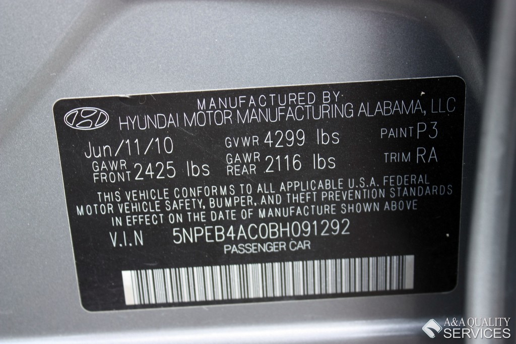 Transmission: Automatic Engine: 4 Cylinder 2.4L VIN: 5NPEB4AC0BH091292