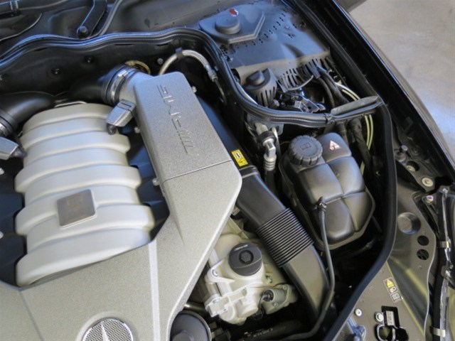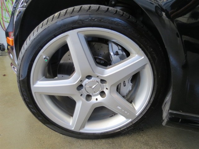 This vehicle features a 6.2L V8 with 507hp and 465 ft lbs of torque. It is mated to a 7 speed Automatic Transmission. Color combo is Black on Black with Matte Burl Walnut wood trim. Standard amenities include Navigation with a 12 speaker surround sound Harman Kardon system featuring Sirius Satellite Radio and 6 Disc Changer. Distinctive to AMG cars are the AMG wheels bumpers sport seat bolsters steering wheel with paddle shifters and gear selector. Speed Proportional Power Steering with 4 Corner Leveling Suspension that is Adjustable and has Ride Height controls as well. It also has 19 inch AMG wheels sporting 255/35 front and 285/30 rear Pirelli PZero tires.