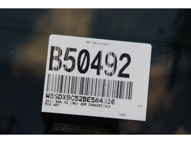 2011 BMW M3 With only one previous owner, this automobile is ready for you.This is a smoke-free automobile.There is no damage evident on this vehicle.This is a garage kept vehicle.The engine on this vehicle is running properly.This vehicle has no known defects.The exterior of this vehicle is extra clean.Extra clean interior. Absolutely no rips, odors or abuse.There is approximately 75% of the tire tread remaining.The mileage represented on this vehicle is accurate.There are no signs of prior damage on this vehicle.There are no noticeable dings on the exterior of this vehicle.This vehicle has a smooth shifting transmission.All power equipment is functioning properly.