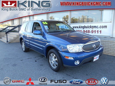 AWD. Move quickly! Come take a look at the deal we have on this charming 2006 Buick Rainier. J.D. Power and Associates gave the 2006 Rainier 4 out of 5 Power Circles for Overall Dependability. With plenty of passenger room, you won't have to worry about being cramped when it's more than just you in the SUV. The Pre-Owned Sales Price is plus sales tax, tag fees and a $200 processing fee. All prices, specifications, and availability are subject to change without notice. Every Pre-Owned Vehicle purchased from King Buick GMC comes with a free CARFAX vehicle history report. Please contact Adam L Herrick at 443.374.7454 for details and the most current information. Pictures may be for illustrative purposes only; offers not valid on prior sales. Please print this ad so you may receive the Internet Sales Price and mention how you found out about us to receive an additional discount.