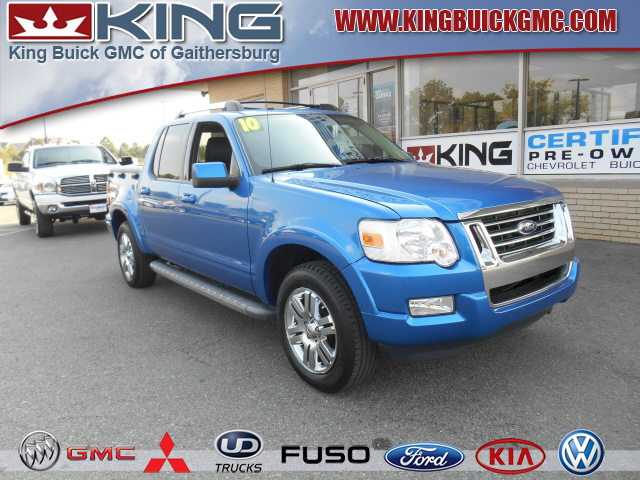 LIMITED, GLASS SUNROOF, & 4 WHEEL DRIVE. Spotless One-Owner! Ready for anything! Type your sentence here. Imagine yourself behind the wheel of this good-looking 2010 Ford Explorer Sport Trac. Why buy a more limited vehicle when you can have this versatile Explorer Sport Trac. It scored the top rating in the IIHS frontal offset test. The Pre-Owned Sales Price is plus sales tax, tag fees and a $200 processing fee. All prices, specifications, and availability are subject to change without notice. Every Pre-Owned Vehicle purchased from King Buick GMC comes with a free CARFAX vehicle history report. Please contact Adam L Herrick at 443.374.7454 for details and the most current information. Pictures may be for illustrative purposes only; offers not valid on prior sales. Please print this ad so you may receive the Internet Sales Price and mention how you found out about us to receive an additional discount.
