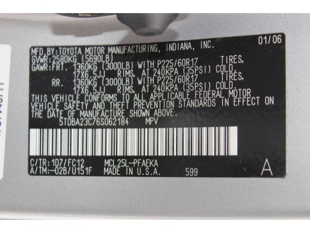 • VIN: 5TDBA23C76S062184