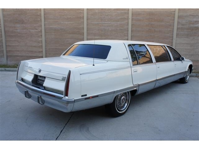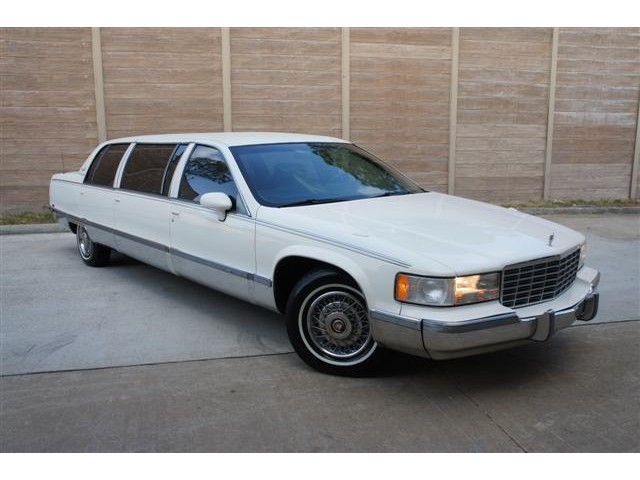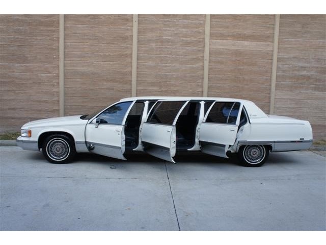 ROADSTERS AUTO IS PROUD TO PRESENT FOR SALE THIS HARD TO FIND 1993 CADILLAC FLEETWOOD BROUGHAM EUREKA COACH 6 DR STRETCH LIMOUSINE! THIS NICE VEHICLE IS FEATURING WHITE COLOR EXTERIOR ON BLUE LEATHER INTERIOR! WITH ONLY 59K ORIGINAL MILES IT LOOKS CLEAN INSIDE AND OUT. IT COMES FULLY LOADED WITH OPTIONS SUCH AS DUAL FRONT AIRBAGS, POWER WINDOWS AND LOCKS, POWER MIRRORS, DUAL POWER SEAT, FACTORY AM/FM RADIO WITH TAPE PLAYER, FACTORY 15 INCH CHROME WHEELS, WOOD TRIM AND MANY MORE(SEE THE PICTURES FOR MORE DETAILS)! ALL THE OPTIONS FUNCTION ACCORDINGLY! THE POWERFUL 8 CYCLES 5.7L ENGINE IS STILL RUNNING LIKE NEW AND THE 2WD AUTOMATIC TRANSMISSION SHIFTS SMOOTHLY INTO GEARS AND PROVIDES SOME GOOD POWER! THE BEAUTIFUL WHITE COLOR EXTERIOR IS IN GOOD AND HEALTHY CONDITION AND THE BLUE LEATHER COLOR INTERIOR HAS BEEN KEPT CLEAN! THE OVERALL CONDITION OF THIS CADDY IS GOOD, AND IT IS PRICED TO SELL VERY QUICK, SO CALL MIKE NOW AT 713-914-0444 TO BUY IT NOW!